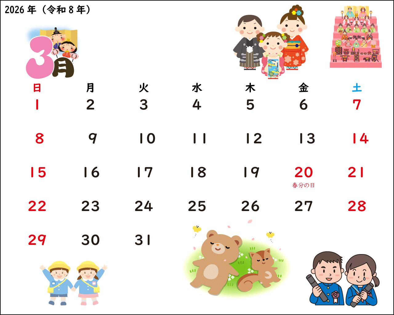 2026年3月 営業日カレンダー